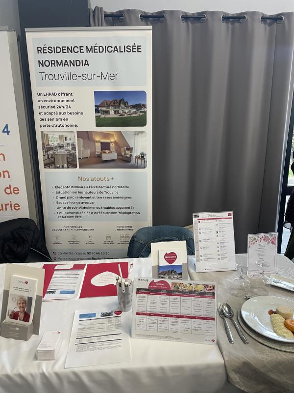 Nous avons fait partie des stands d’information aux côtés du Centre Local d'Information et de Coordination (CLIC) du Pays d'Auge, du Centre Territorial de Ressources (CRT) du Pays d'Auge nord, de l'ESAD (Equipe Spécialisée à domicile), du SSIAD Vallée d'Auge, des associations Le Temps Retrouvé, France Alzheimer Calvados, de la CARSAT de Normandie, de la Mutualité Sociale Agricole (MSA) des Côtes Normandes.