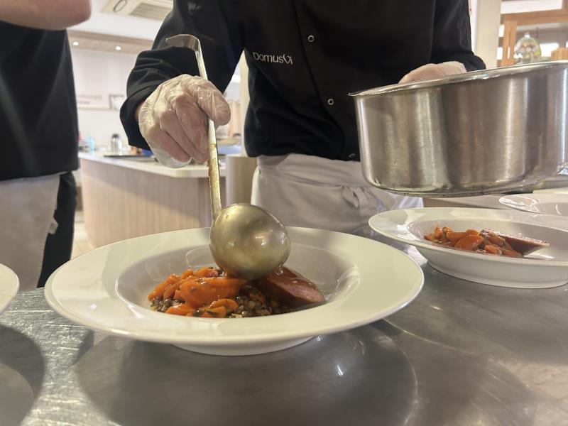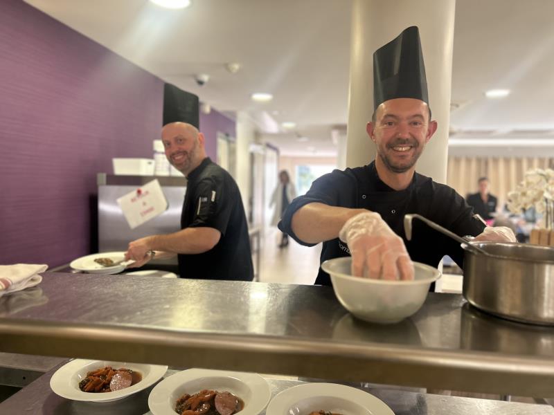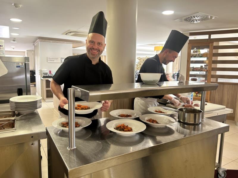 Pour célébrer cette belle occasion, lors de notre déjeuner ce midi, nos talentueux cuisiniers ont préparé leurs plats du jour en direct, juste devant nous, à l'entrée du restaurant.
