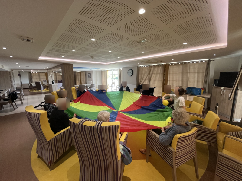 Pas de baptême de l'air mais de l'exercice, çà, oui ! Aujourd’hui, lors de notre atelier d'activités physiques adaptées c'était parachute :-)