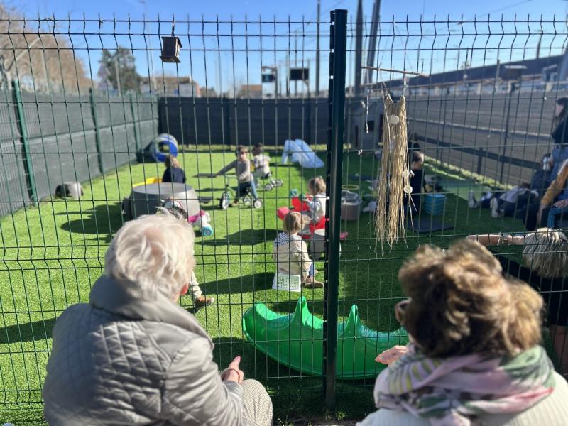 Après avoir joué ensemble, nous avons pris le goûter puis nous nous sommes installés dehors pour profiter du beau temps et prolonger ces instants précieux.