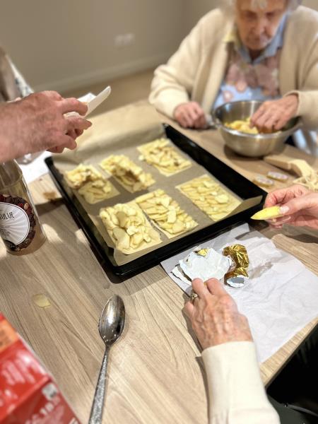 Pour le dessert, on met la main à la pâte également en préparant une délicieuse tarte aux pommes.
