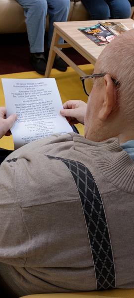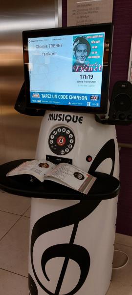 Sur l'air célèbre de Charles Trenet, "Y'a d'la joie", nous avons initié notre atelier chant. Nous nous sommes rassemblés autour de notre borne mélo, outil musical interactif, dont nous avons utilisé la fonction juke-box aujourd'hui. Nous avons choisi les musiques les unes après les autres, paroles à l'appui pour les uns, de mémoire pour les autres et avons passé un agréable moment à chanter !